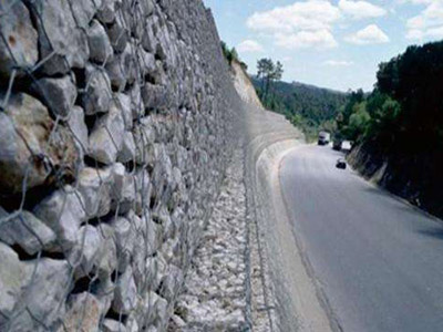 石籠網(wǎng)擋墻由大規(guī)格六角網(wǎng)聯(lián)結(jié)而成,施工中只需將石塊裝入籠中封口即可。