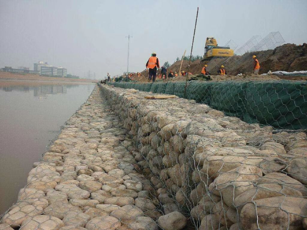 石籠網(wǎng)是由具有延展性的鋼絲或許包覆PVC的以上鋼絲運用機械織造而成,依據(jù)ASTM A 975和EN10223規(guī)范,所運用的鋼絲直徑依據(jù)工程設(shè)計需求而不一樣。通常介于2.0-4.0mm之間,鋼絲的抗拉強度不少于38kg/m2,金屬鍍層分量通常高于245g/m2石籠網(wǎng)片的邊際線直徑通常要大于網(wǎng)線直徑。其雙線絞合有些的長度不得小于50mm.以確保絞合有些鋼絲的金屬鍍層和 PVC鍍層不受損壞。